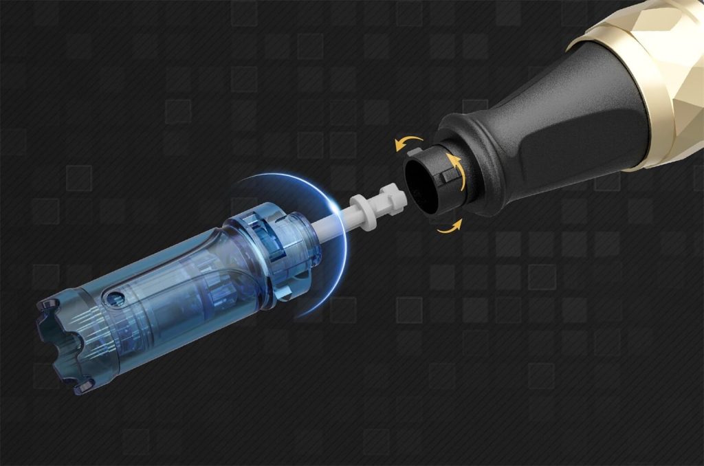 The syringe tail end refers to the shape of the cartridge base that touches the skin. It affects how the pen delivers serum and how smoothly the treatment feels.