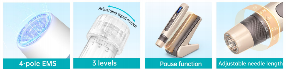 ● Integrates triple effects:EMS electroporation,automatic serum apply and microneedling.